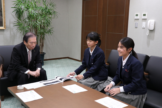 白川市長から「体調を整えて、練習の成果を発揮してください。一致団結して、チームワークで優勝をつかんで」と激励されると、メンバー62人を代表して、6年生の森島心咲さんが「厳しい練習を乗り越えてきた仲間と一緒に、悔いのない最高の演技・演奏を目指して頑張ります」と力強く決意表明をしました。