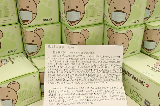 新型コロナウイルス感染拡大防止に役立ててほしいと、これまで市内企業や市民の皆さんから、マスクや物資の寄贈、寄付金などを頂いていますが、海外からの寄贈は初めてです。