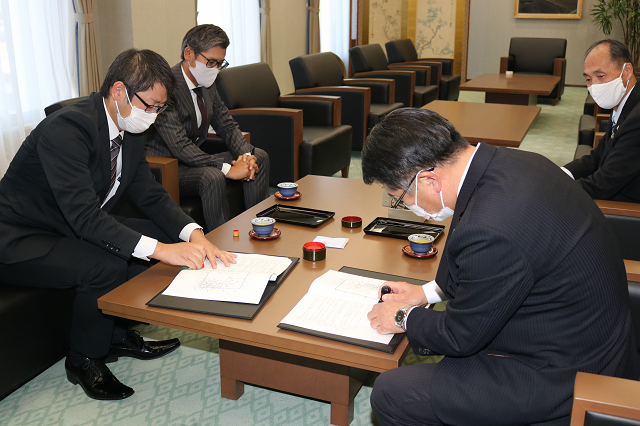 11月4日、市と株式会社総合開発は、「災害時における避難場所等の施設利用に関する協定」の調印式を行いました。地域住民の安全確保のため、瀬戸町にある事務所や工場を災害時に避難所として利用します。挽田副市長は「避難所だった競輪場が解体により使えないため、協力いただきありがたい。有事の際には有効に活用させていただきます」と話していました。