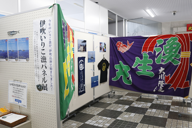 解禁に合わせて市観光協会では、6月30日まで、漁法や伊吹いりこの製造過程などを紹介するパネル展を開催。