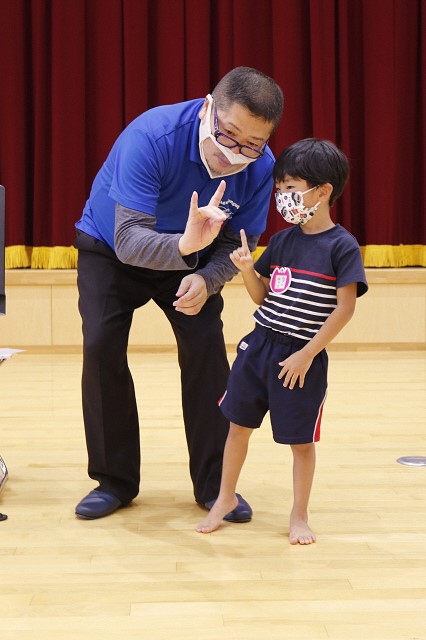 9月22日、手話に親しんでもらおうと、観音寺こども園で手話教室が開催され、親子など29人が参加しました。