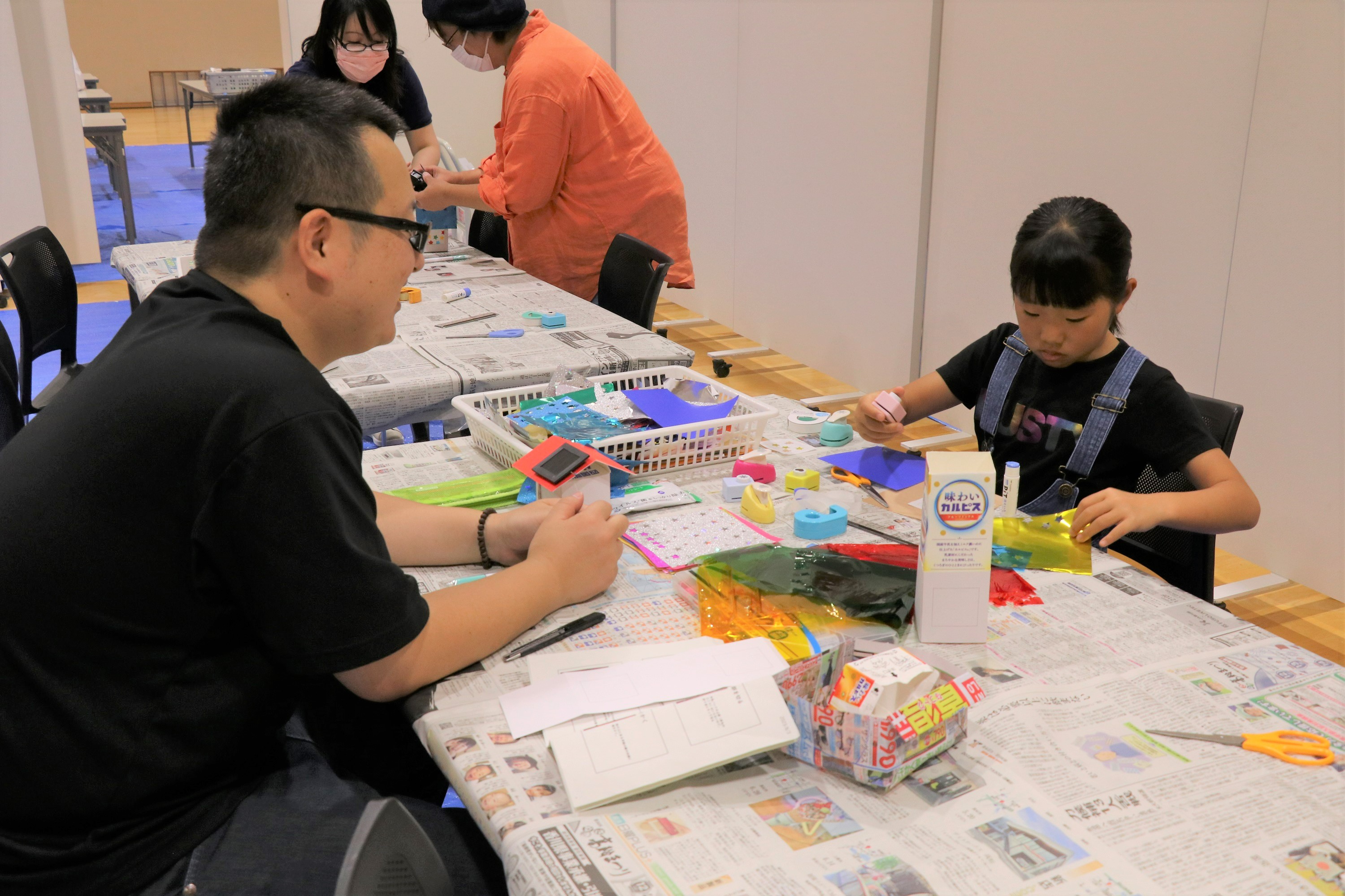 会場では小学生対象の環境学習会も開かれ、古い布と粘土を使ったリースやLEDのソーラーランタン作りなどに子どもたちが挑戦。ランタン作りに参加した小学6年生は「工作が好きなので楽しかった。蓄電について勉強できた」と話していました。