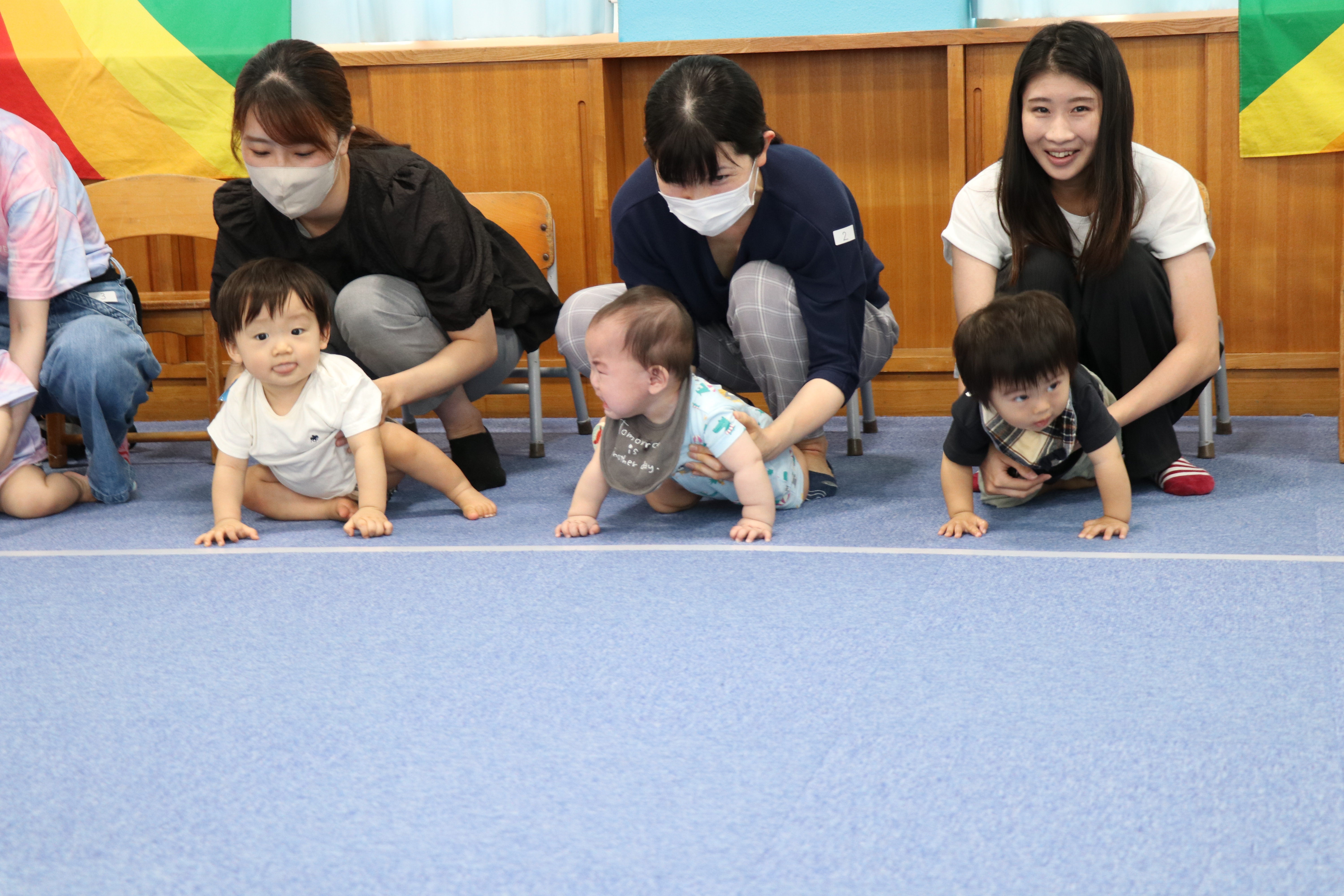 赤ちゃんは、ゴールまで一直線に向かう子や途中で止まってしまう子などさまざま。5メートル先のゴールまで、家族がミルクや絵本などを持って導きました。 参加者は「他のレースに参加したときはゴールできなかったが、今回はできて成長を感じた」「泣きながらだったけど、ゴールすることができていい経験になった」と話していました。