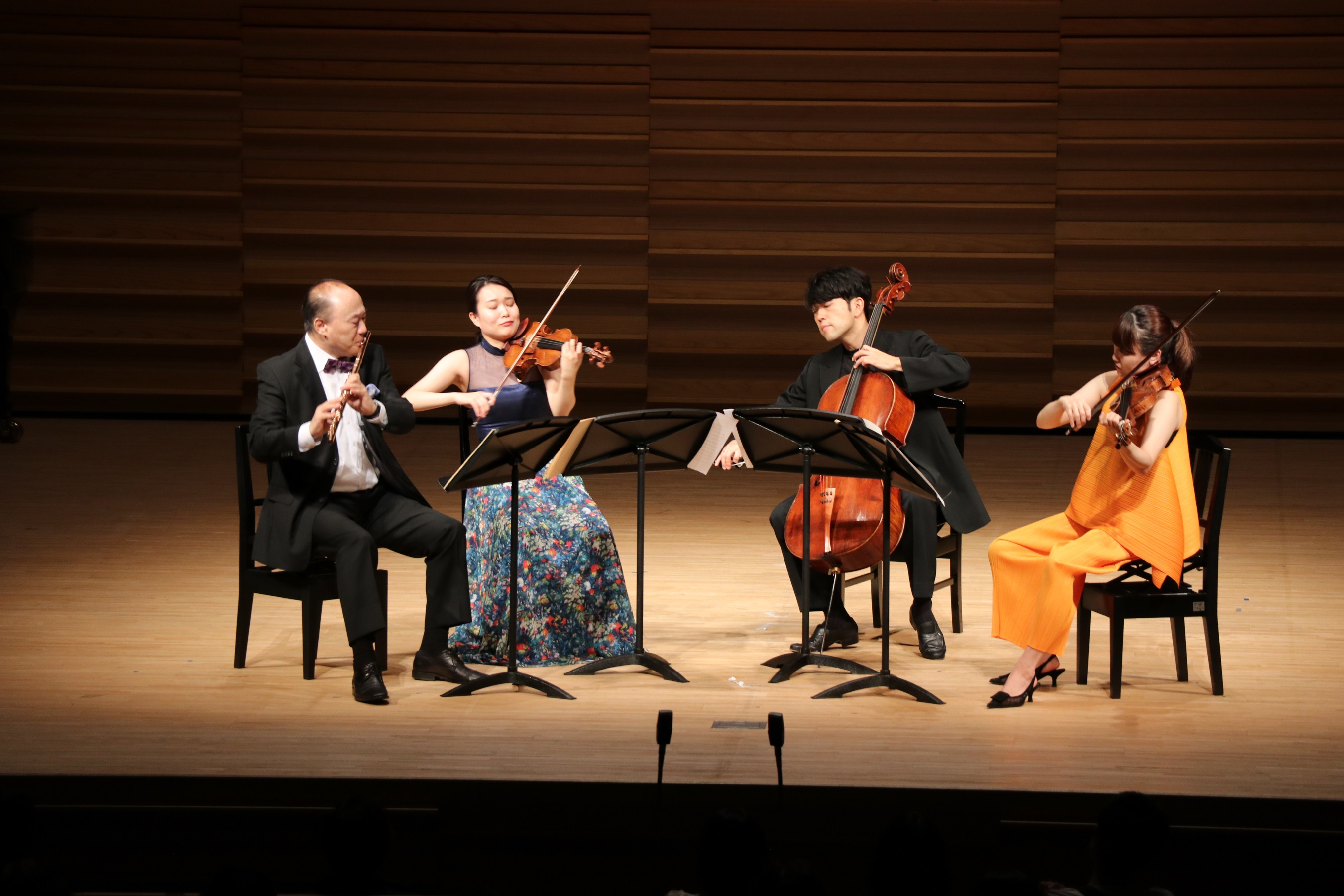 公演は、サクソフォンの齊藤健太さんとピアノの五十嵐薫子さんの演奏で開幕し、2台ピアノによるデュオ、フルート四重奏、そして最後は、シューベルトのピアノ五重奏曲イ短調「ます」をピアノ五重奏という編成で披露し、躍動感と緊張感のある演奏に大きな拍手が上がりました。