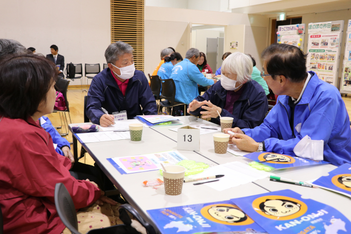座談会では、移動支援や独自の体操を考え行っていること、防災マップを作っていることなど各地域での取り組みを話したり、買い物支援や男性参加者の増やし方などの課題で盛り上がりました。