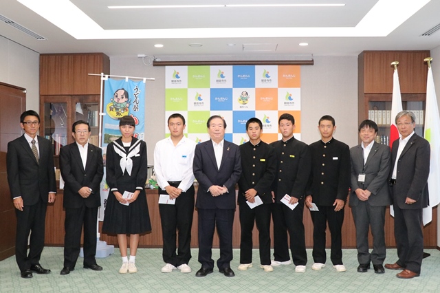 10月14日、第47回ジュニアオリンピック陸上競技大会に出場する選手の激励会がありました。大会への切符を手にした中学生たちは「「トップレベルの選手と戦えるよう精神力を強く持ちたい」「自己ベストを更新して、決勝に残りたい」などと、一人ひとりがそれぞれの目標や決意を述べました。白川市長は「普段の熱心な練習が、全国大会出場につながったのだと思います。大会では、強い精神力で頑張ってください」と選手たちを激励しました。(大会は10月28日~30日、横浜市日産スタジアムで開催)
