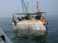 「伊吹いりこ」は獲ってすぐに、高速運搬船で直接加工場へと運ばれ、加工されます。